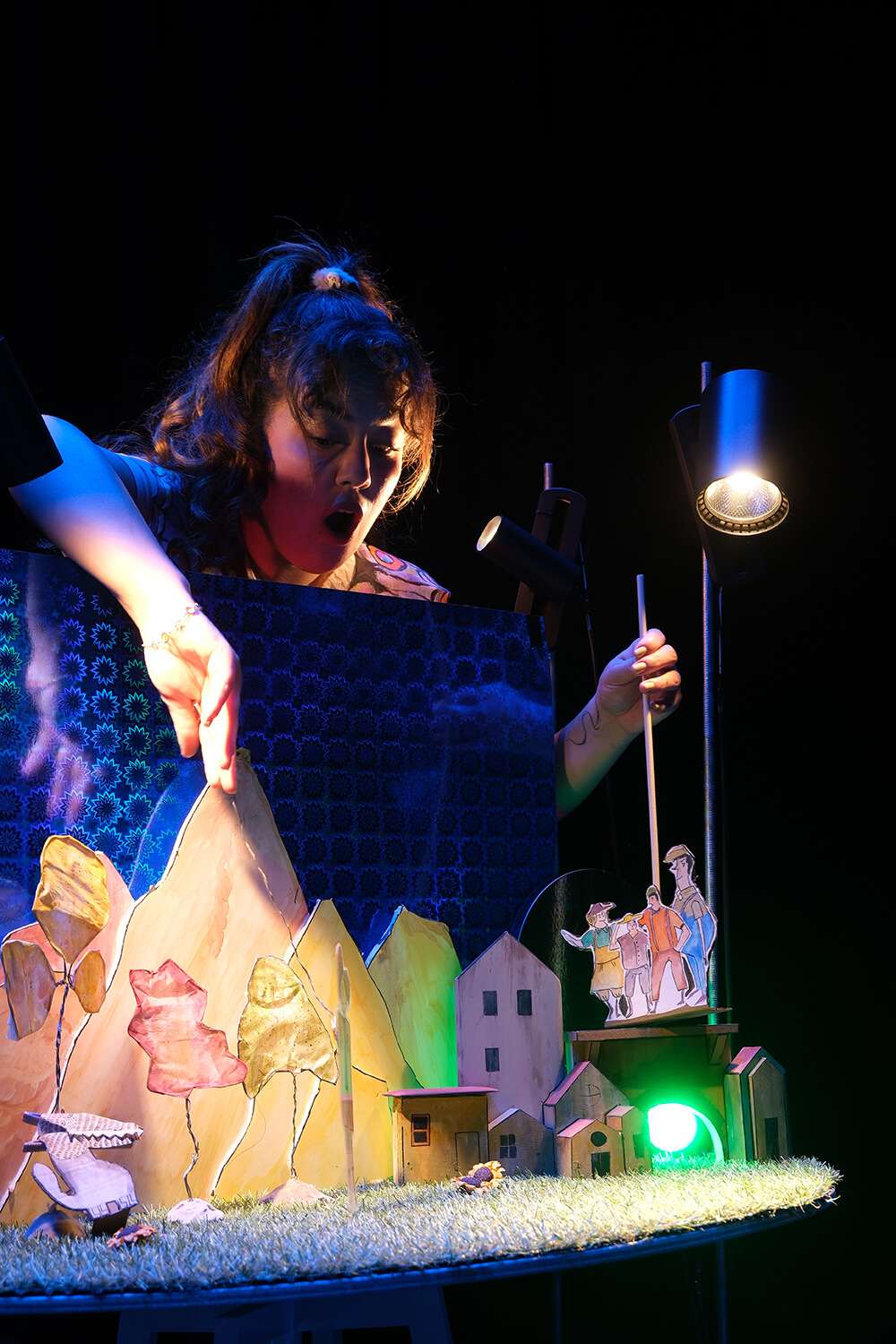 Aslında dekorumuz diğer oyunlarımıza kıyasla daha küçük; minik tasvirlerimiz ve kuklalarımız var. Ancak masalın kilit noktalarını aktarırken sahne tasarımı en büyük destekçimiz oluyor. Bunu nasıl sağladın?